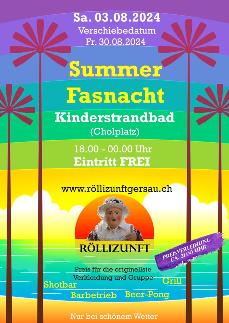 Summer Fasnacht im Strandbad Cholplatz. Nur bei schönem Wetter. Verschiebedatum 30.8.2024.
