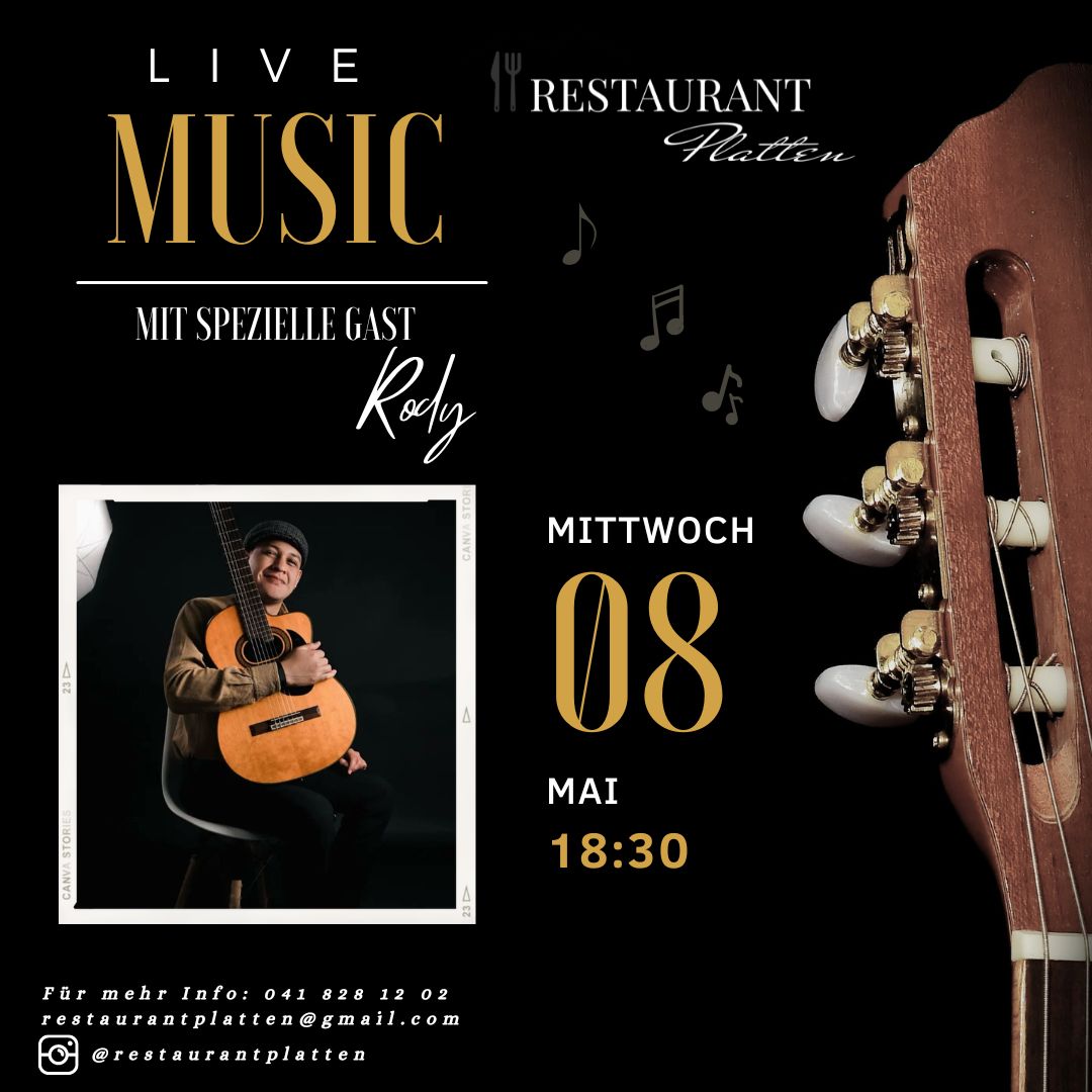 warum warten auf das Wochenende? Geniessen Sie Ihre Auszeit schon am Dienstag bei uns im Restaurant Platten. Unser spezieller Gast Rody spielt für Sie beliebte Amerikanische & Spanische Songs.