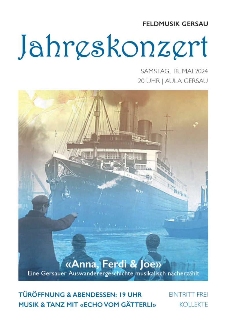 Am Samstag 18.05.2024 findet unser alljährliches Jahreskonzert um 20:00 Uhr in der Aula Gersau statt