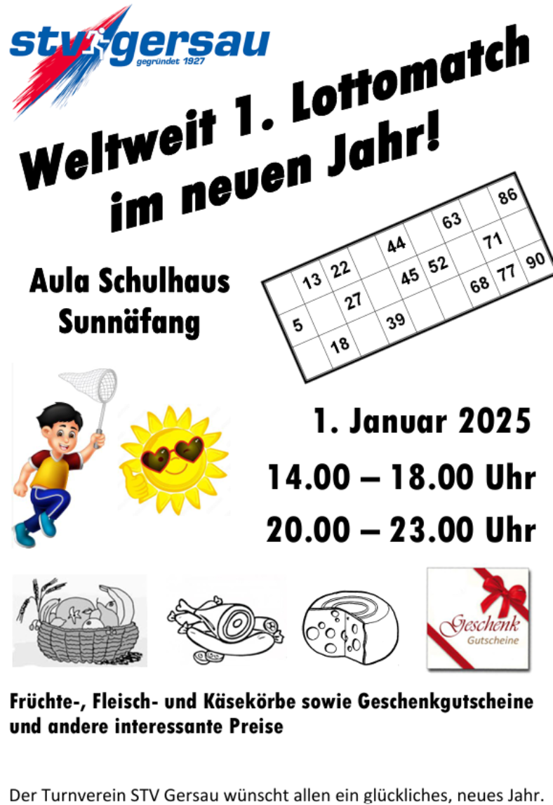 Traditioneller Neujahrslottomatch des Turnvereins STV Gersau im Restaurant Schäfli. Spielzeiten am 1. Januar: 14 –